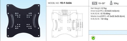 Adaptador Soporte Yd-f-560a Para Tv – 15 A 30¨ Fijo 20×20 Color Gris Para televisores de 15 a 30 pulgadas Soporte fijo con medidas de 20×20 cm Color: Gris Garantía: 1 año
