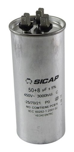 Capacitor Aire Acondicionado Metalicos 50+8 Uf 450vac Dual